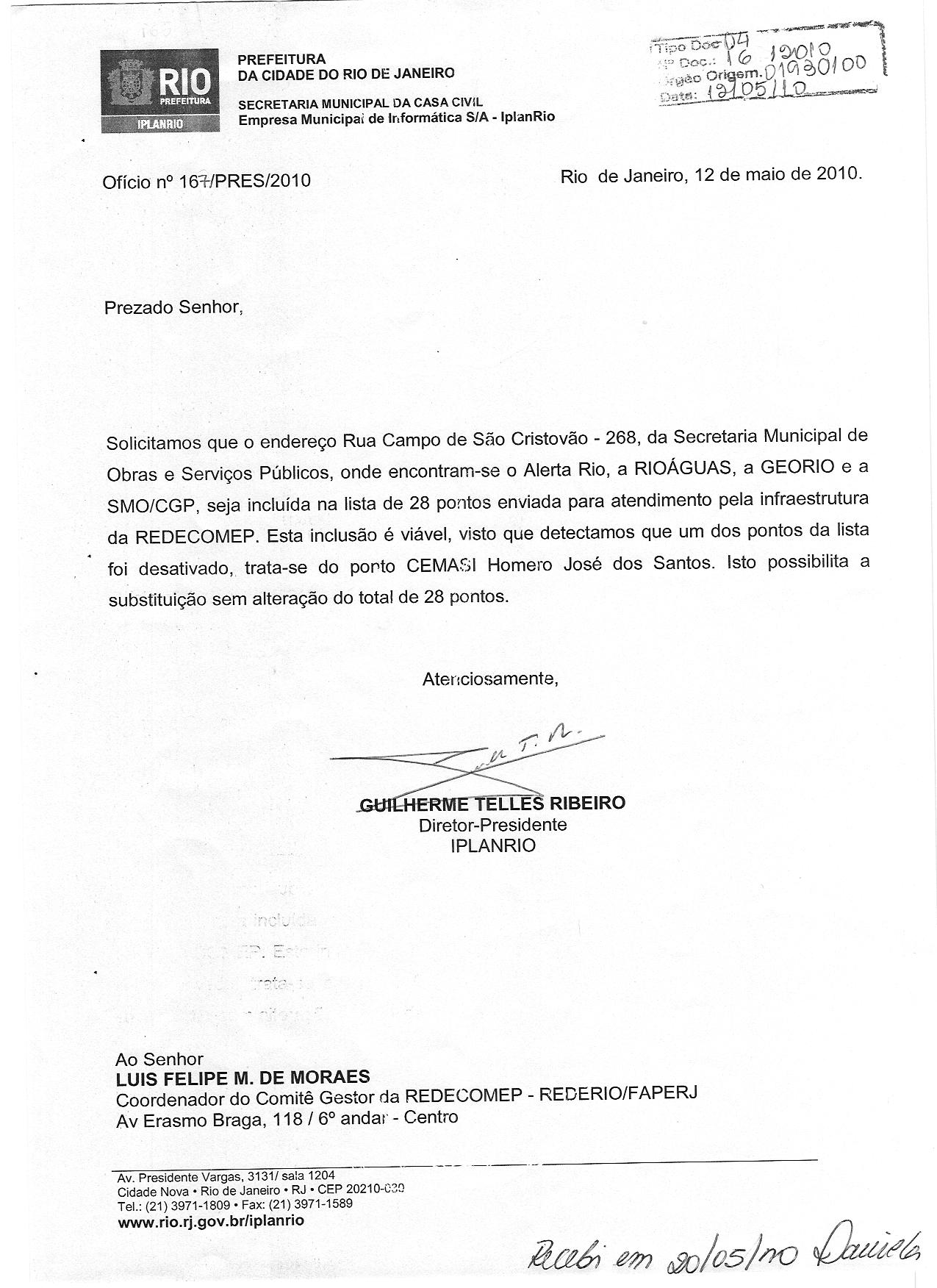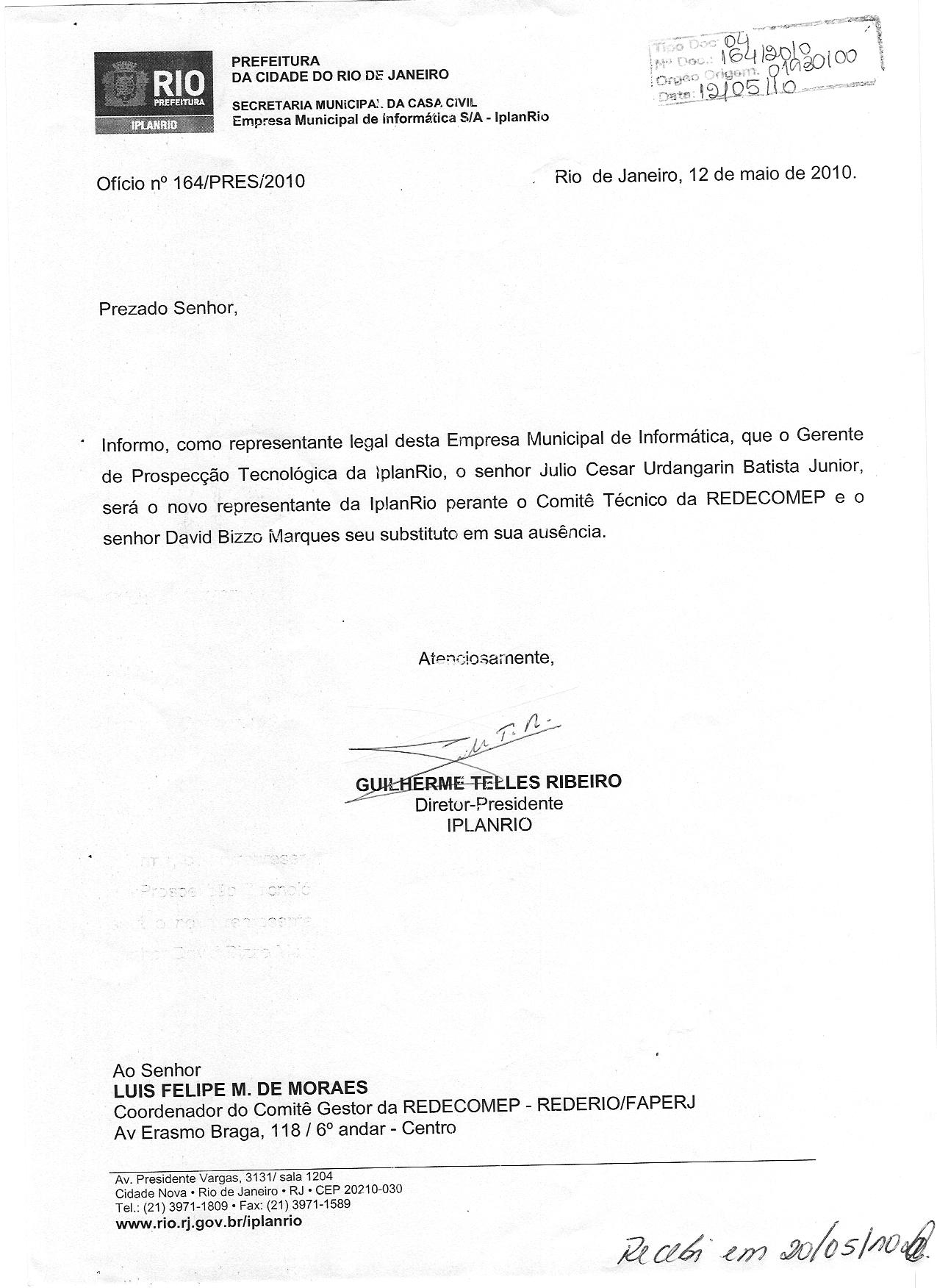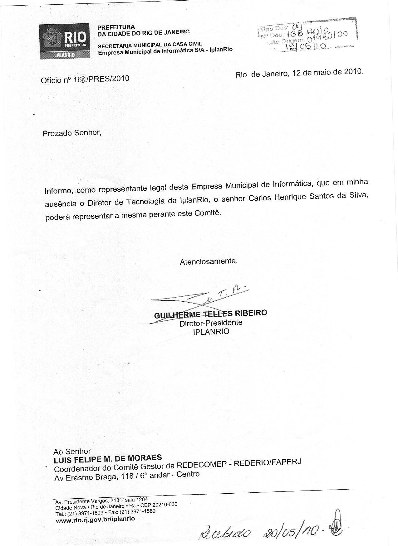 22.06.2010 – Representante legal da IplanRio na ausência do Diretor de Tecnologia