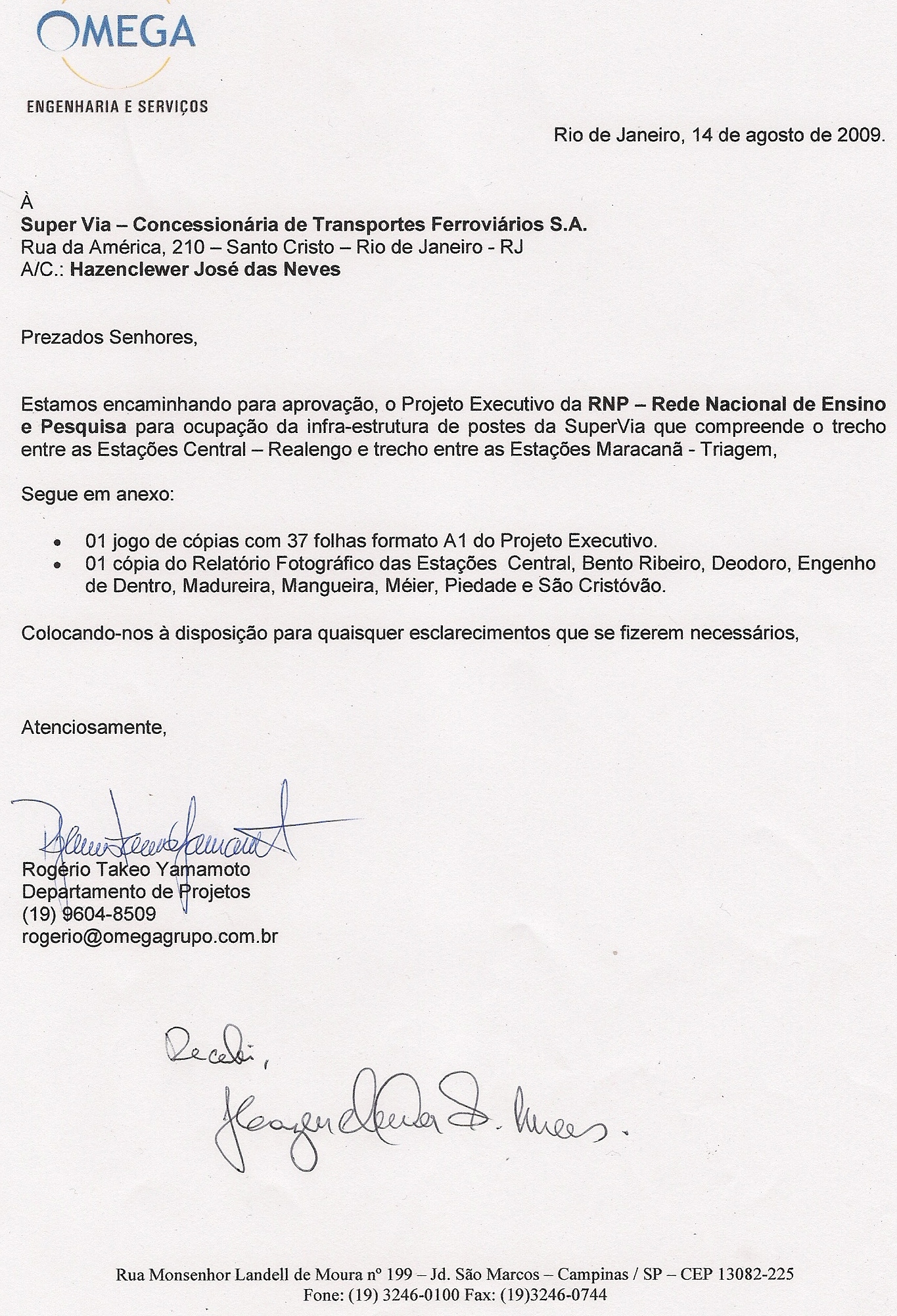 • 25.08.2009 – Protocolo de entrega Projeto SuperVia